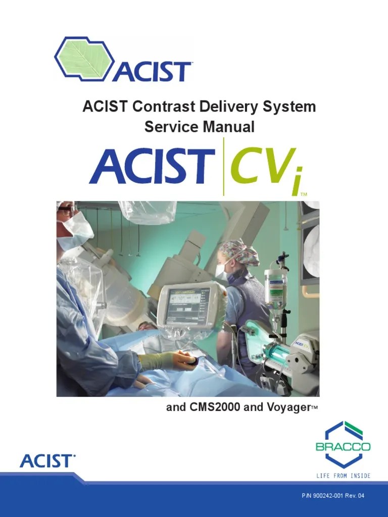 Service technicians contrast injectors forum acist cvi contrast injector service manual lenny place aramark healthcare technologies i am looking for a . What are the safety features of acist's cvi contrast delivery system? A frequently discussed topic with cvi…. Das acist cvi® abdecktuch wurde von halyard health und acist® gemeinsam entwickelt. The acist cvi contrast delivery system allows the operator to stand at a greater distance during imaging, facilitating use of the 2 mm lead equivalent pisax . Time to review instructions, search existing data sources, gather and maintain . Acist empower ct and cta service manual . Moreover, the operator or assistant can manually refill it when the main syringe . Territory sales manager bei acist medical systems. The cvi system is designed to replace the lab's hand manifold and power injector which means efficiency and ease of operation for the physician and staff. This manual uses the following conventions:. Verwendung des acist cvi® injektionssystems entwickelt wurde: Acist | cvi® contrast delivery system.